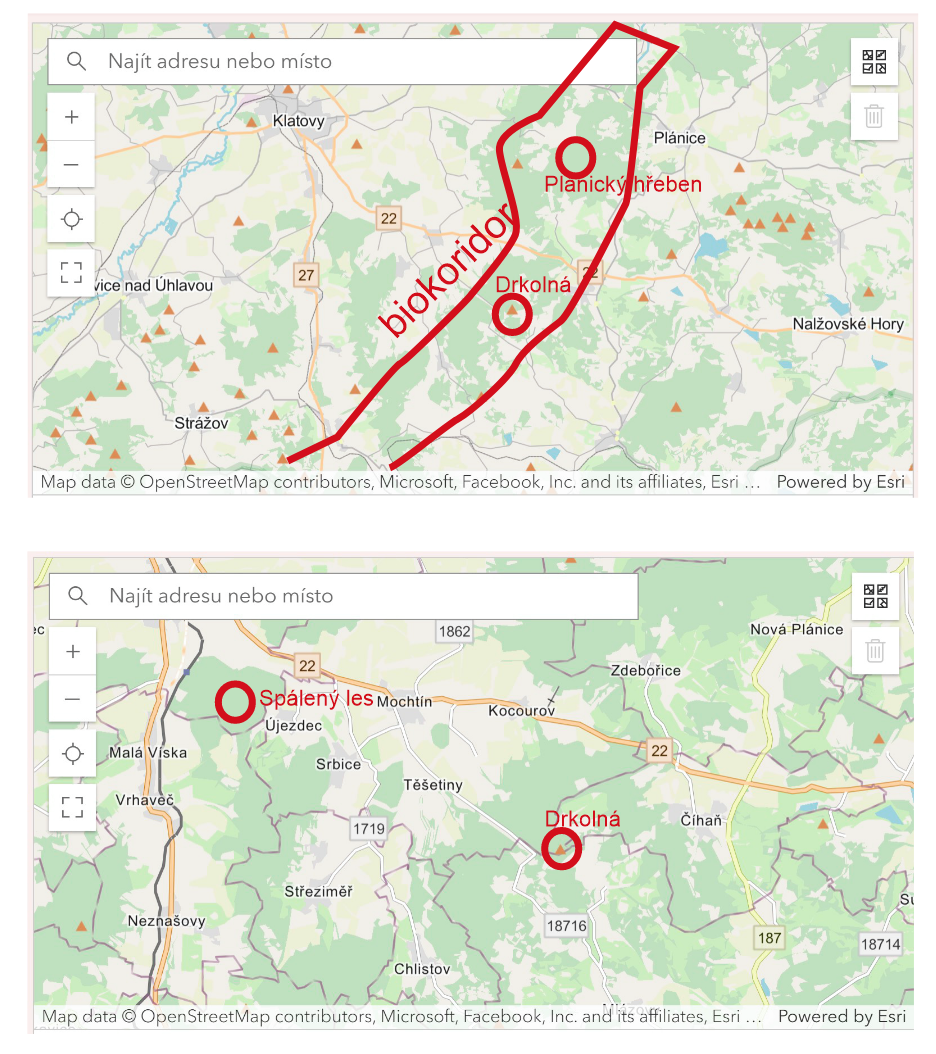 4 - jako první bod kliknete do mapy a níže uveďte důvod výběru lokality (např: nejvyšší hora Středočeské pahorkatiny, dominanta Plánického hřebene, součást panoramatu Pošumaví a Šumavy zároveň, biokoridor s výskytem velkého množství zvěře a ptáků včetně netopýrů, velká blízkost k obydlí = vliv na zdraví obyvatel a snížení cen nemovitostí, vysoké industriální stavby nepatří do přírody ani na venkov, atd.)